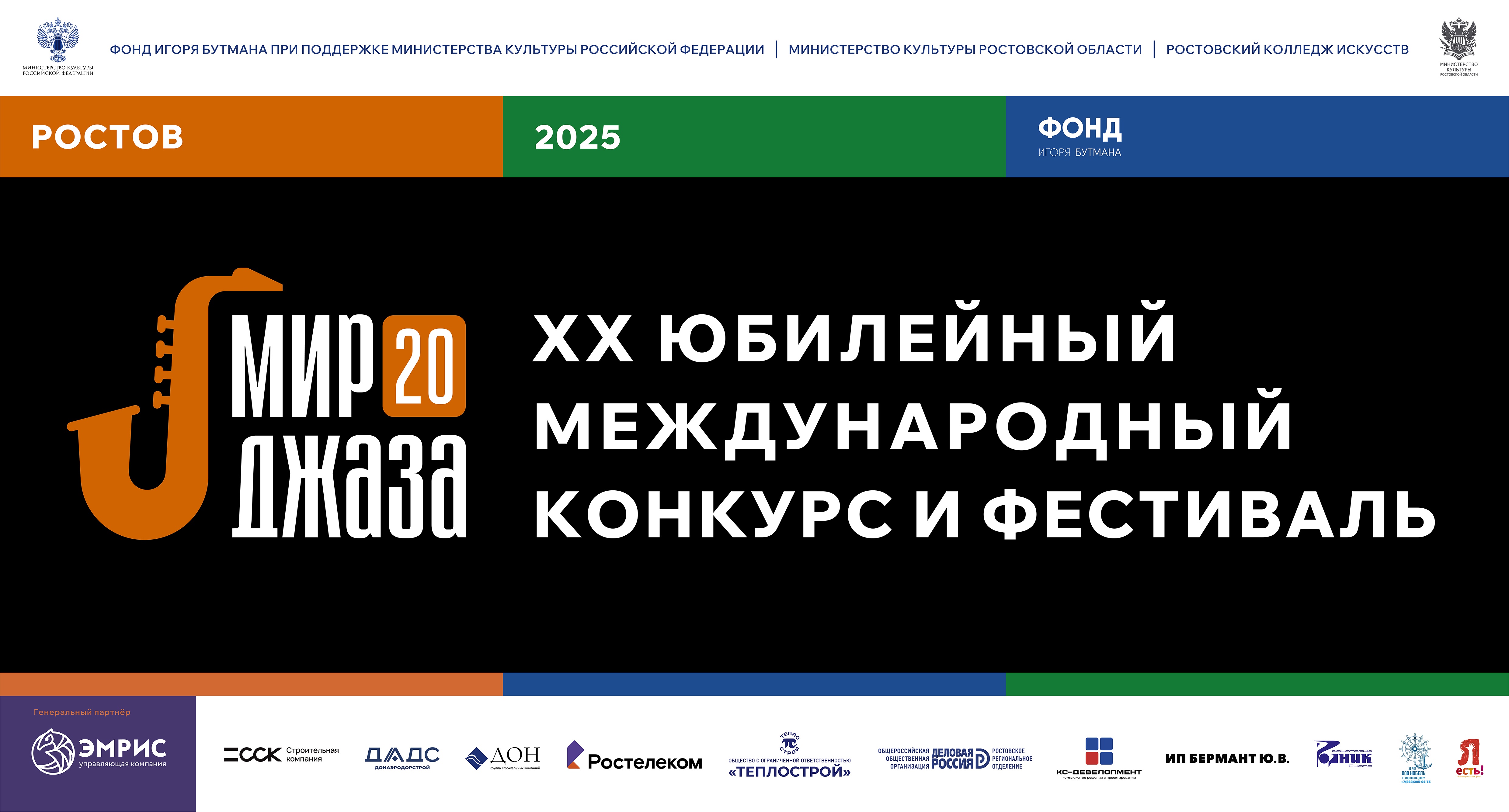 Управляющая компания «ЭМРИС» выступила Генеральным спонсором двадцатого юбилейного международного конкурса и фестиваля «Мир джаза», проходящего в Ростове-на-Дону с 14 по 24 ноября 2025.